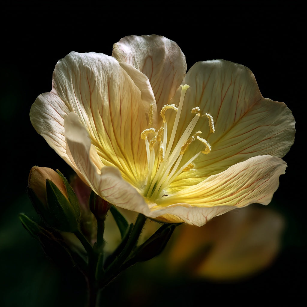 Eve’s Primrose — rich in gamma-linolenic acid, supports hormonal rhythm, eases hot flashes and cycle shifts, and promotes supple skin and vitality.